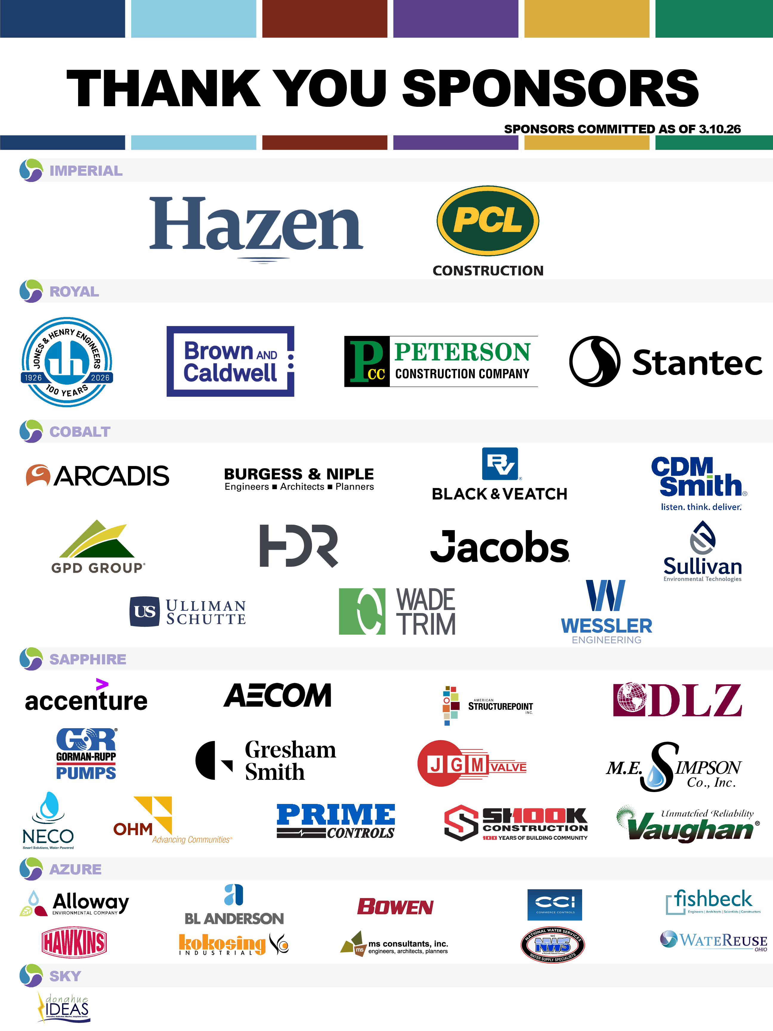 As a sponsor you will receive recognition at all the conference events, the One Water Ohio website, and reach public and private owners of wastewater treatment and drinking water facilities, Ohio cities and counties, consultants, engineers, operators, laboratory analysts, public utility managers, and Ohio EPA staff. Past One Water conferences have yielded attendees from far and wide. Your exposure will spread across the region and beyond.